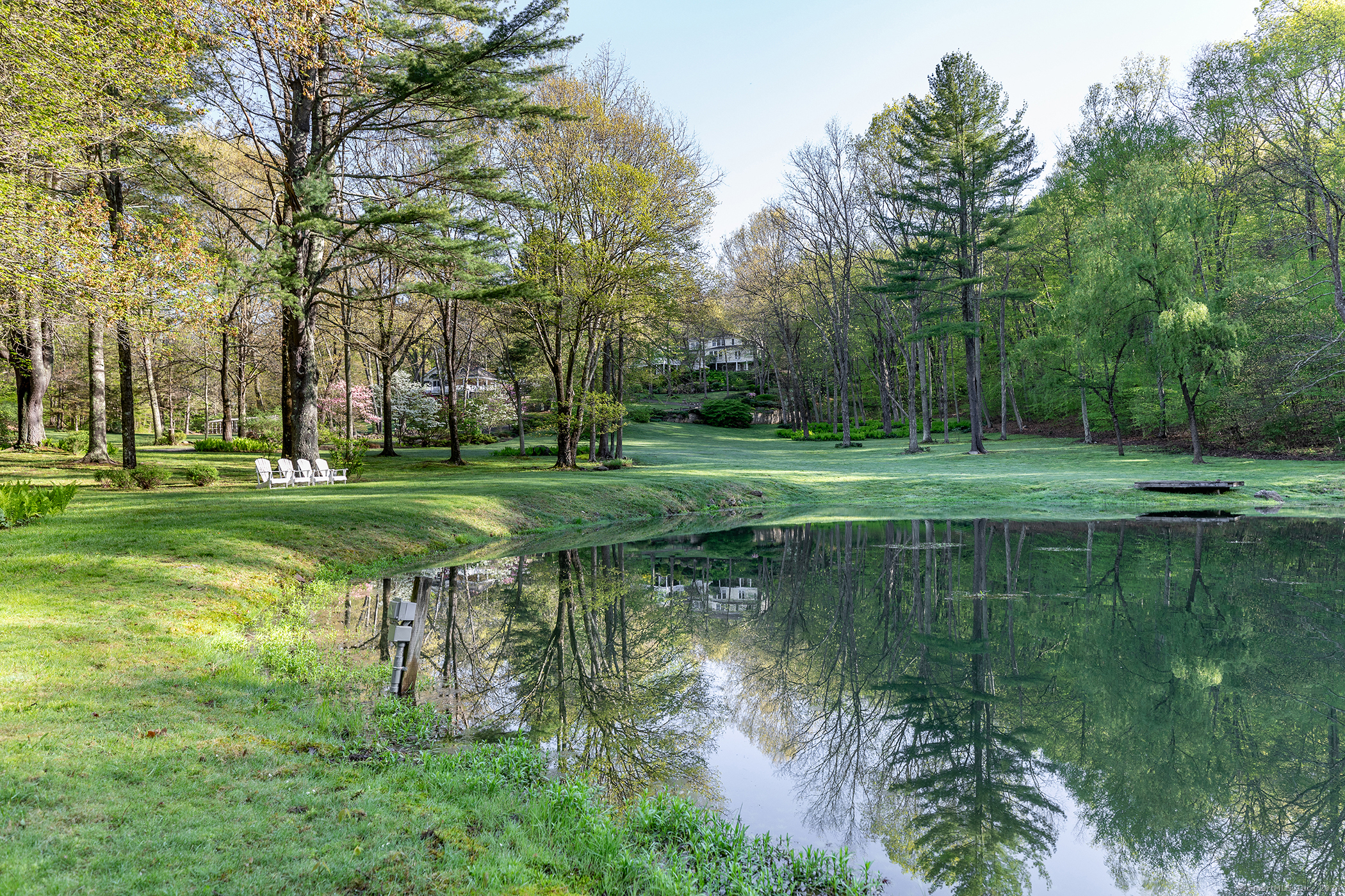 Private country estate on 24+ acres with distant sunset views, rolling lawns, gardens, and a peaceful pond. The classically designed 4+ bedroom Colonial sits atop a long tree-lined drive and features grand rooms, high ceilings, and wide-board pine floors. A vaulted great room and eat-in kitchen open to a mahogany deck and stone patio overlooking the property. The elegant living and dining rooms, sunroom, and first-floor ensuite bedroom enhance the main level. The upstairs primary suite includes a fireplace, marble bath, walk-in closets, and terrace. The walk-out lower level offers a family room, gym, bath, and potential apartment. A two-bedroom pool house, heated gunite pool, and custom gardens complete this rare, one-family-owned oasis.