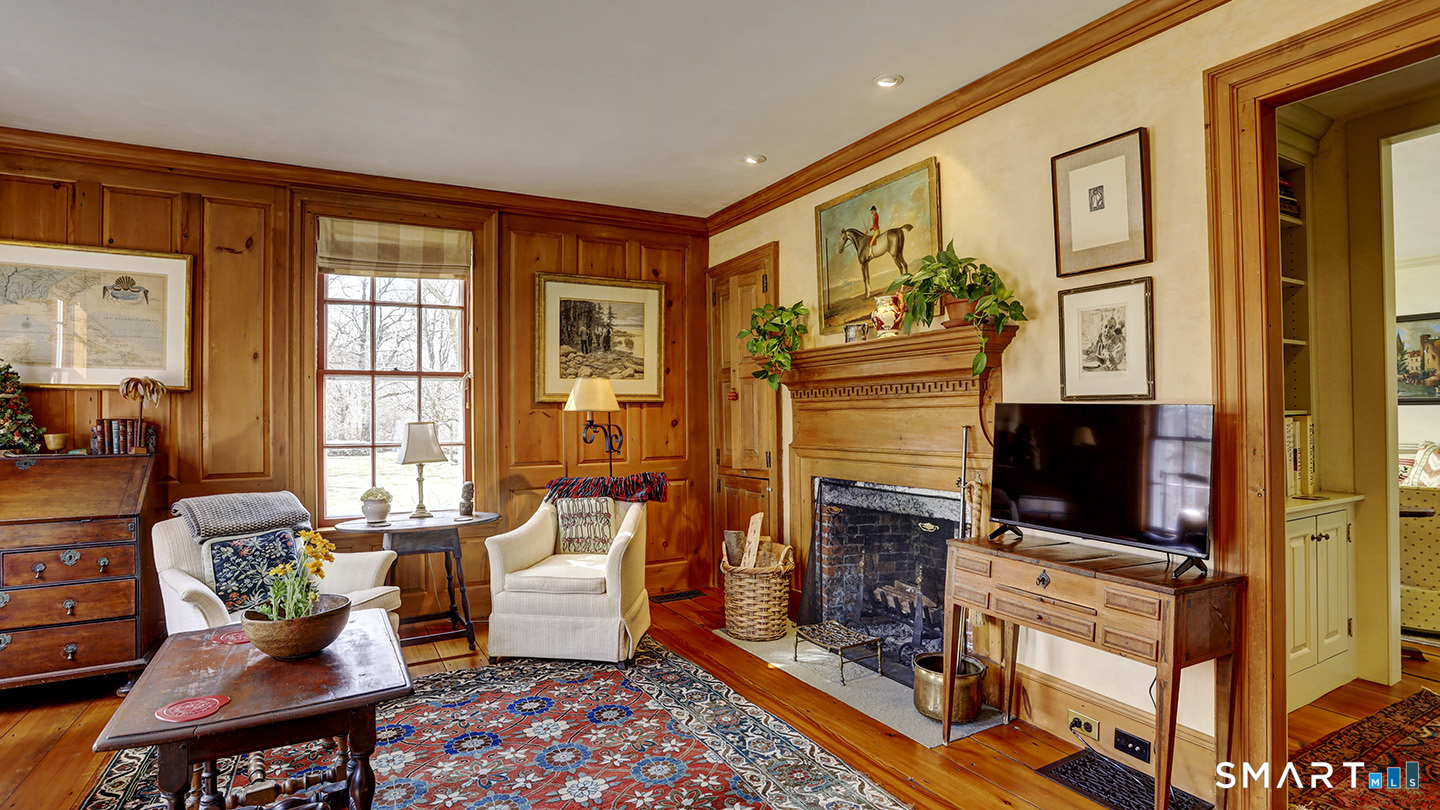 Corner house is a magnificent 1790 Center Hall Colonial with its 2-car detached garage/barn and beautifully landscaped saltwater pool on a total of 15.46 acres with wide open south-westerly views of Haystack Mountain. Many original features including built-in cabinets and woodwork, wide board floors, plaster walls and windows. The entire property has been thoughtfully restored and exceptionally well cared for. Step inside and you are greeted by a large entry hall with original wide pine floors, high ceilings, plaster walls, and elegant open staircase. Four rooms flank the entrance hall, each a unique mix of plaster walls, original built in cabinetry, wood paneling and fireplaces. At the far end of the entry hall is the dining room with carved antique mantle and surround. Double glass doors lead to the kitchen, screened porch, bathroom, laundry room, and an attached early Colonial guest house -- great for overflow. The porch was screened with invisible screens in 2025 with south western exposure and sweeping views of the grounds to Haystack Mountain. Along a wide hallway on the second floor with a lovely window seat are five bedrooms and three full baths. The primary has a plastered chimney with raised fireplace, walk in closet, built-ins, window seat, open-air wraparound deck, and en-suite bath with tiled shower, tub, and two sinks. At one end of the garden is a Gunnite pool with a waterfall. Fenced and landscaped with mature hydrangeas. Complete with a pool house.